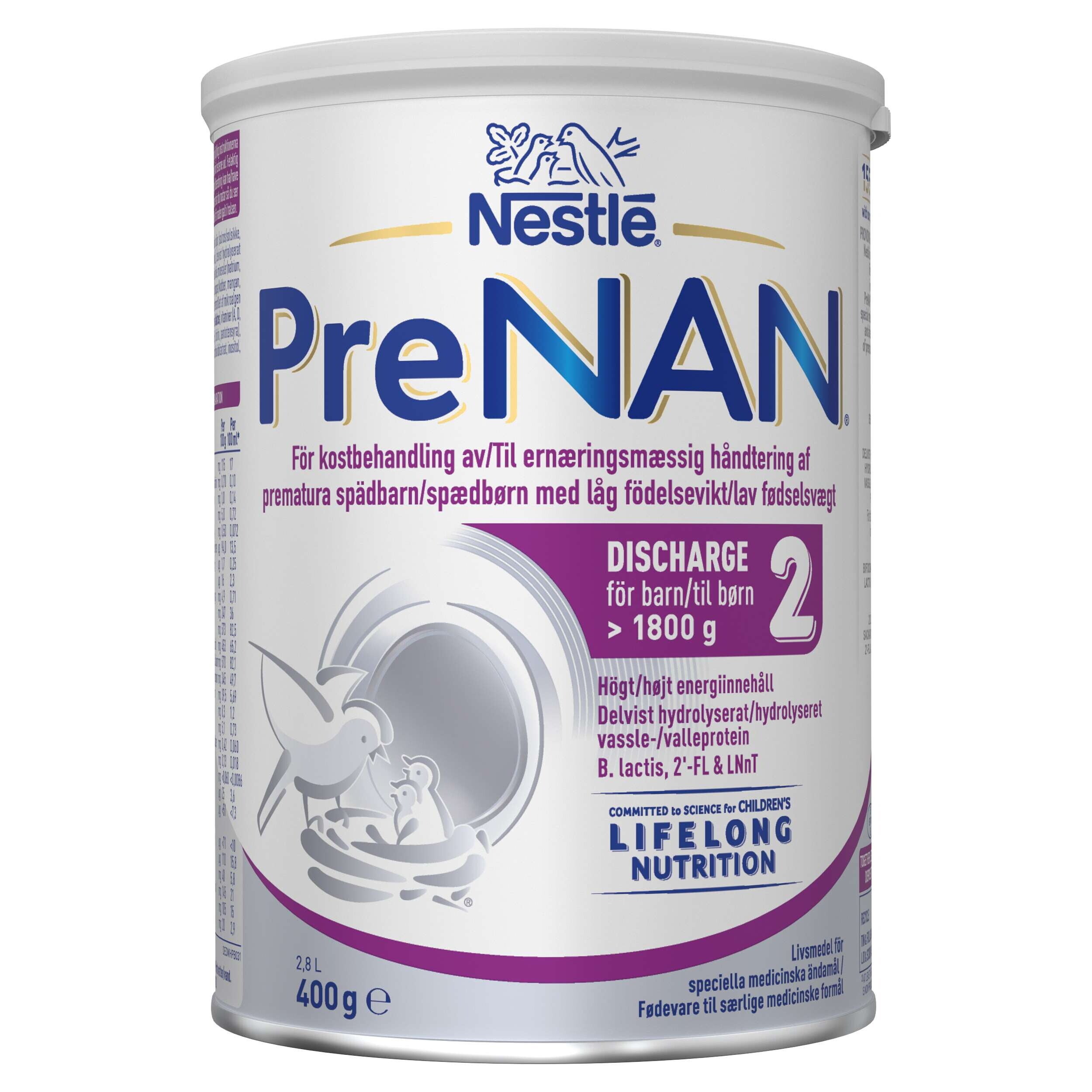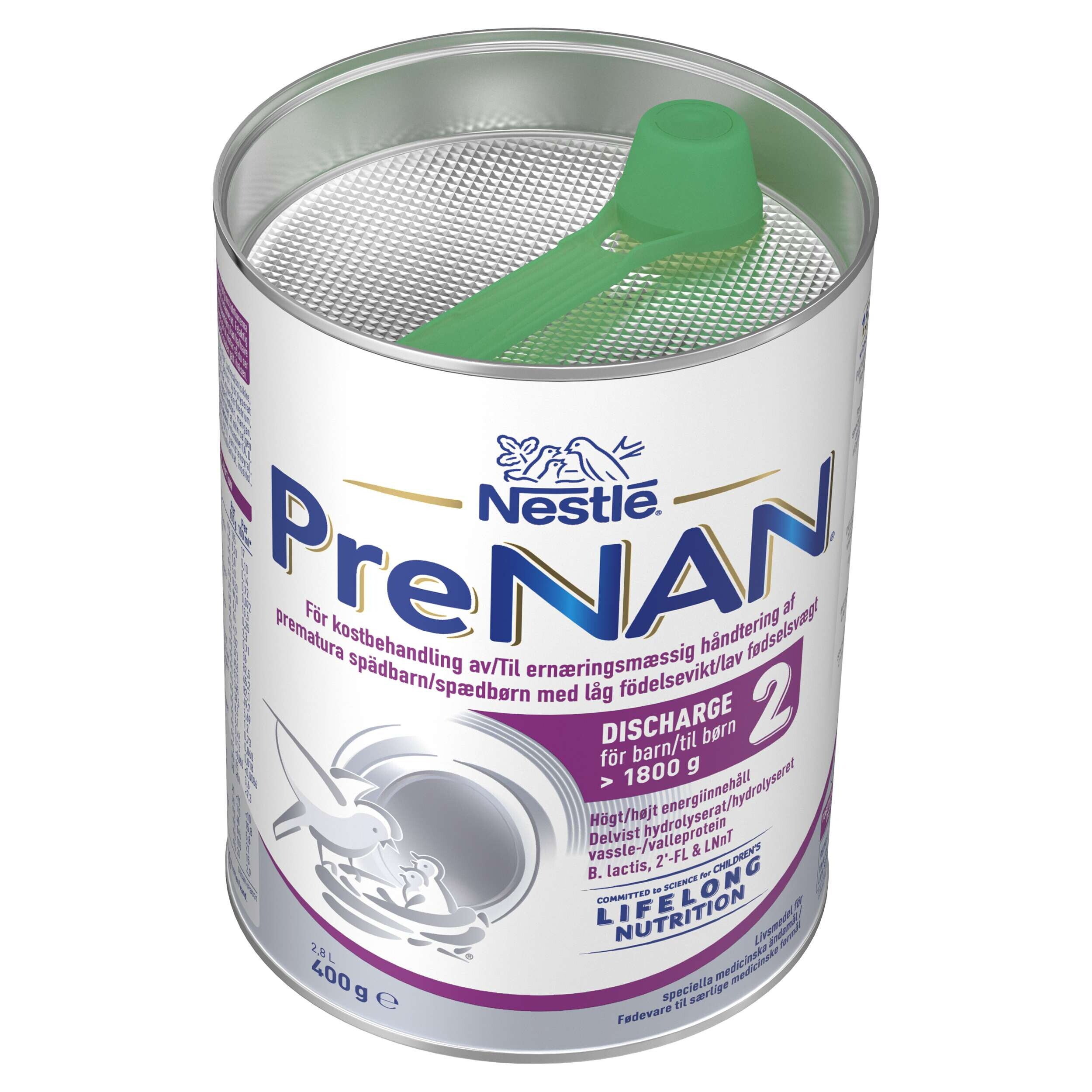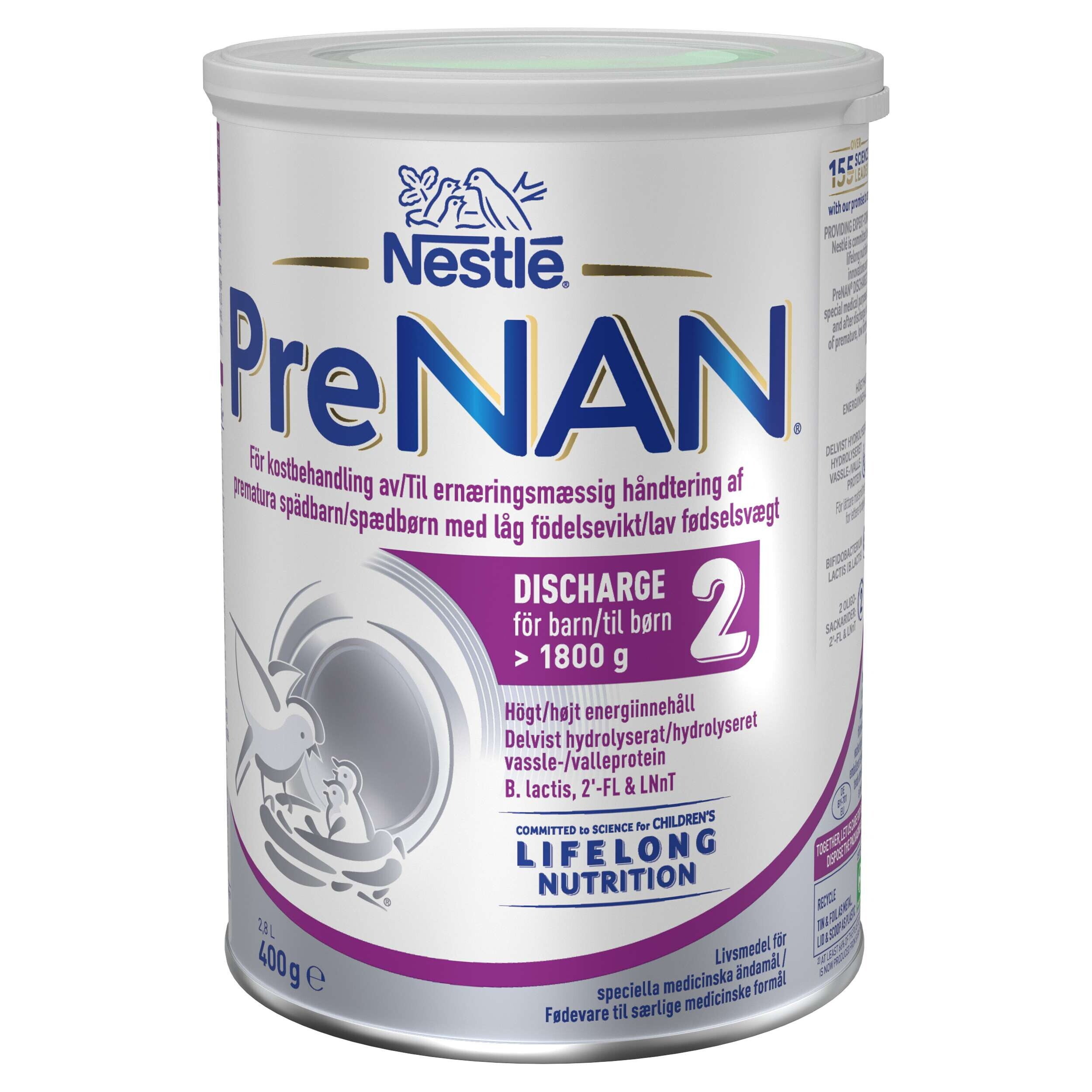 PreNAN Discharge 2 kostbehandling är speciellt anpassade för att tillgodose behovet hos prematura barn och barn med låg födelsevikt som av någon anledning inte kan ammas eller få bröstmjölk. PreNAN discharge används under övergångsperioden till en modersmjölksersättning avsedd för fullgångna barn. Används så länge barnläkare och/eller dietist rekommenderar.