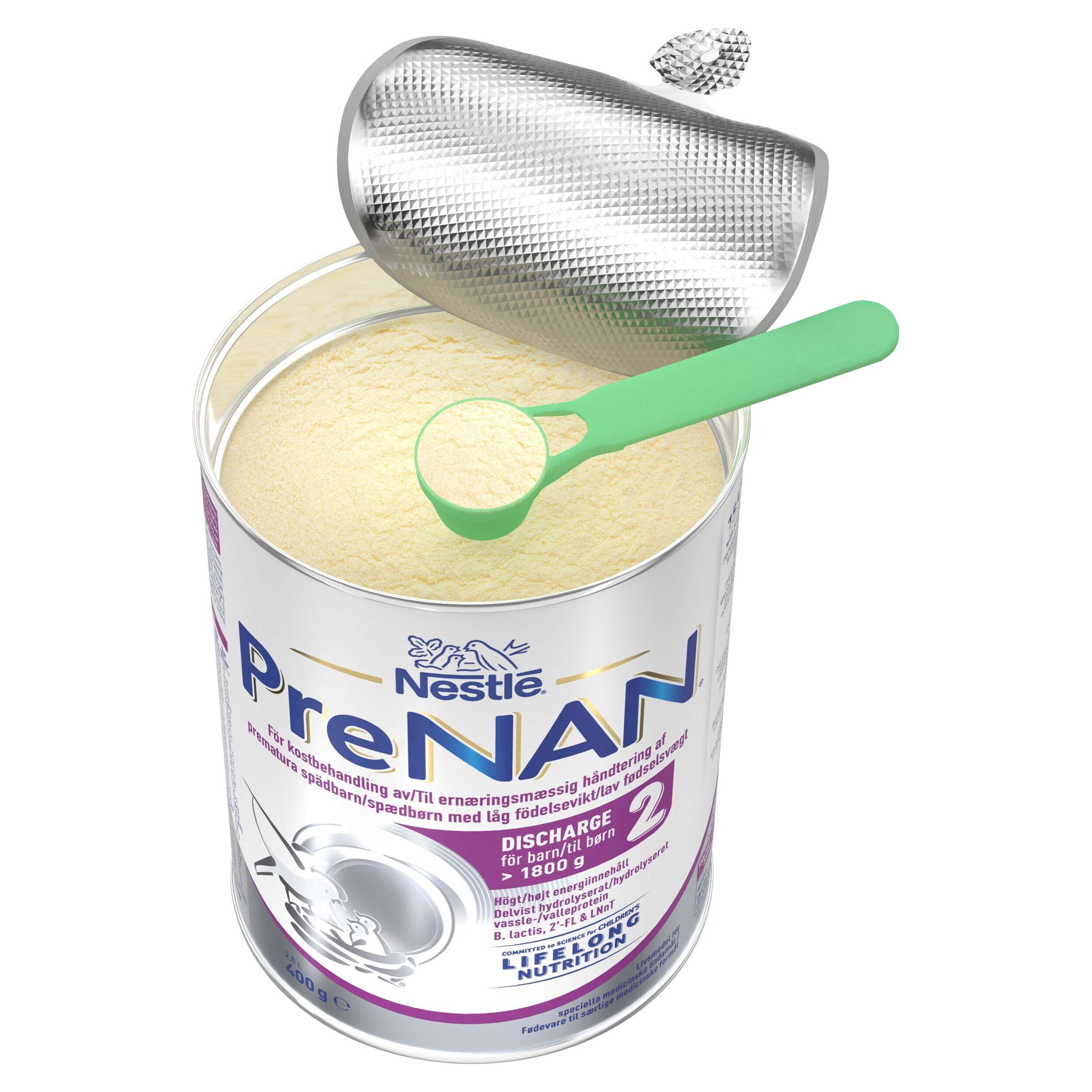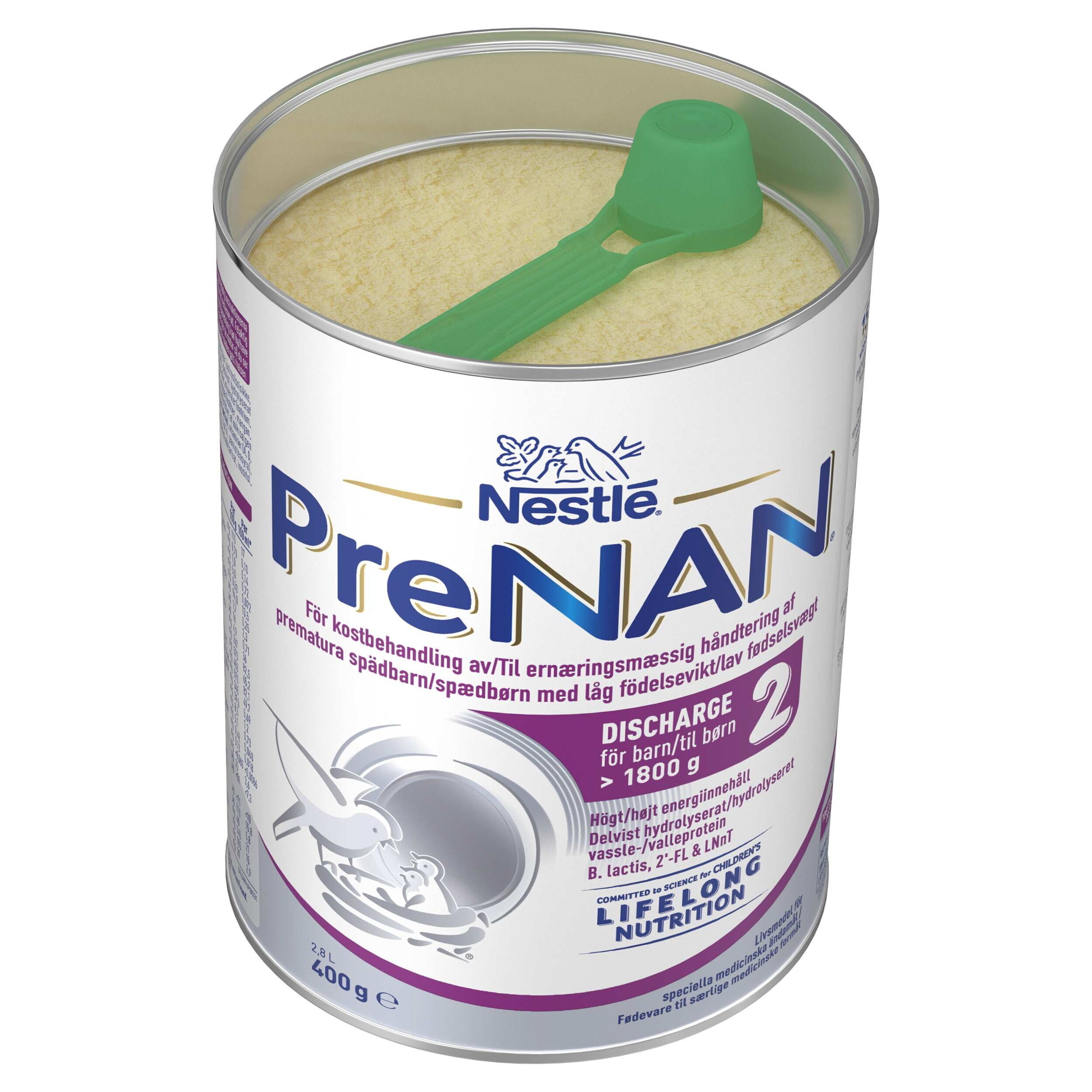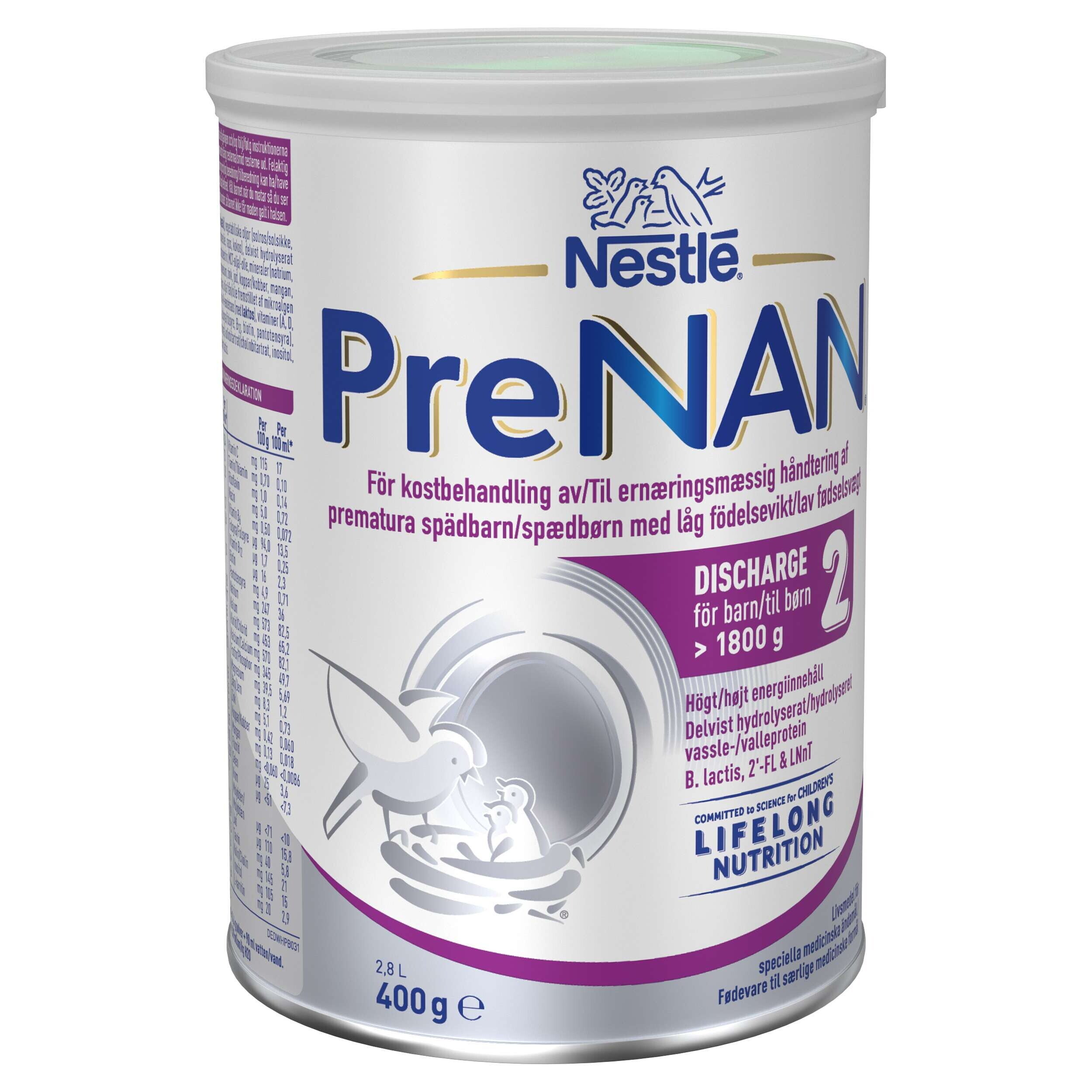 PreNAN Discharge 2 kostbehandling är speciellt anpassade för att tillgodose behovet hos prematura barn och barn med låg födelsevikt som av någon anledning inte kan ammas eller få bröstmjölk. PreNAN discharge används under övergångsperioden till en modersmjölksersättning avsedd för fullgångna barn. Används så länge barnläkare och/eller dietist rekommenderar.